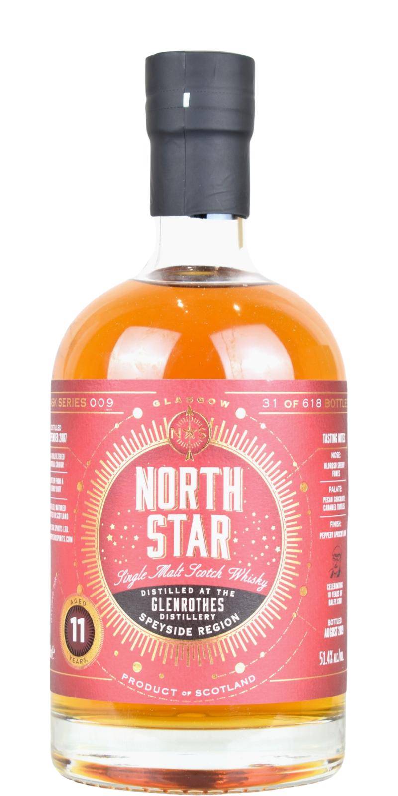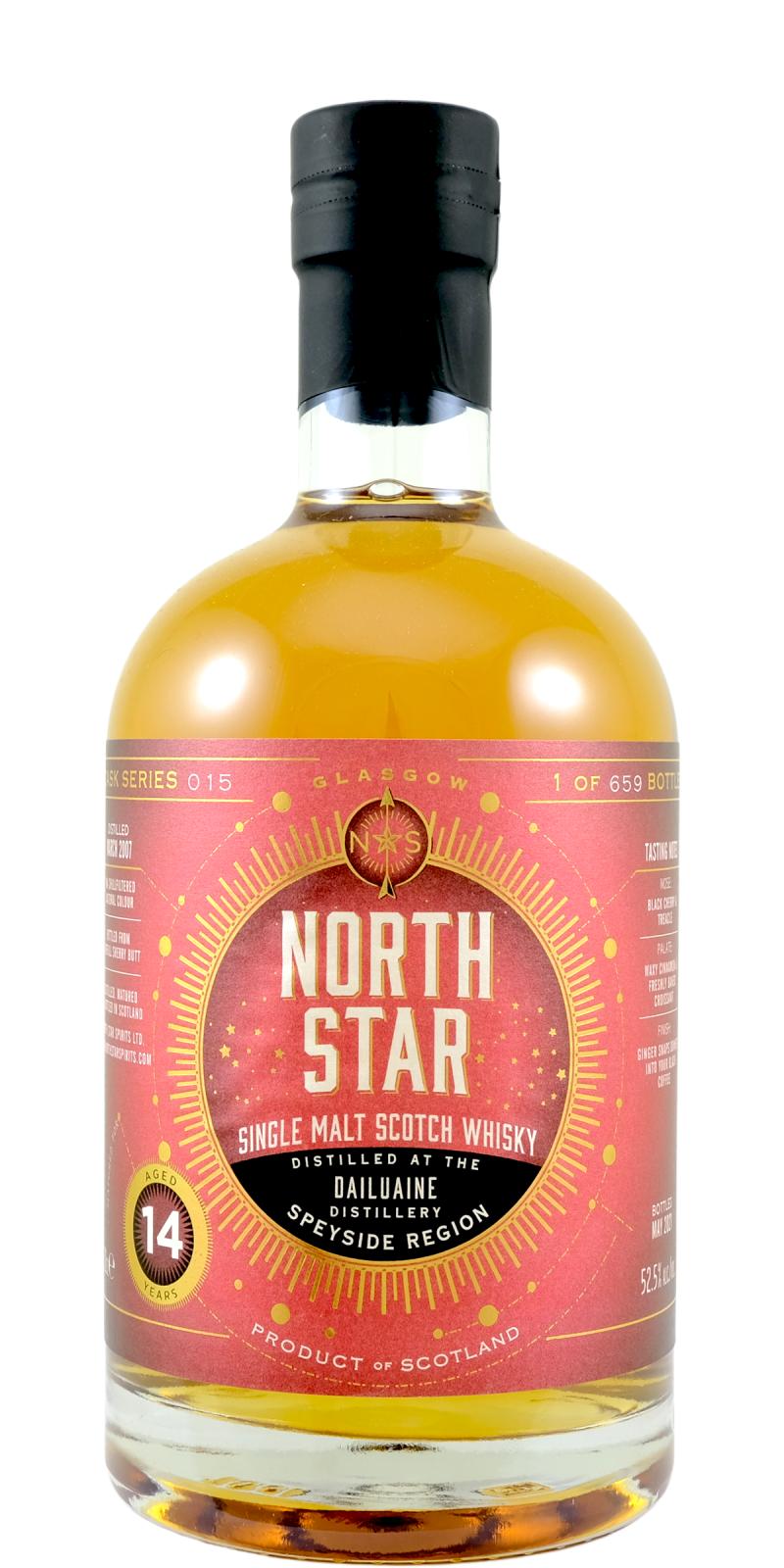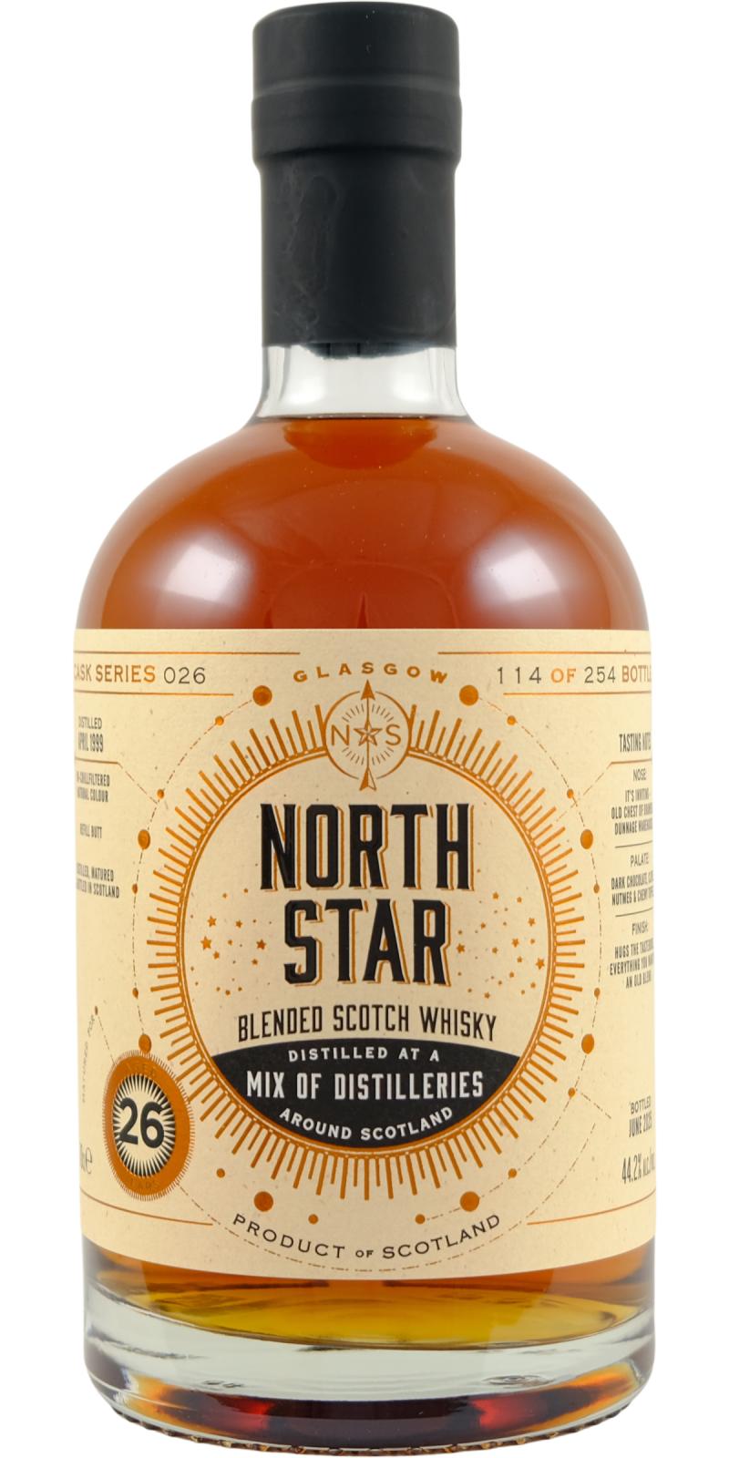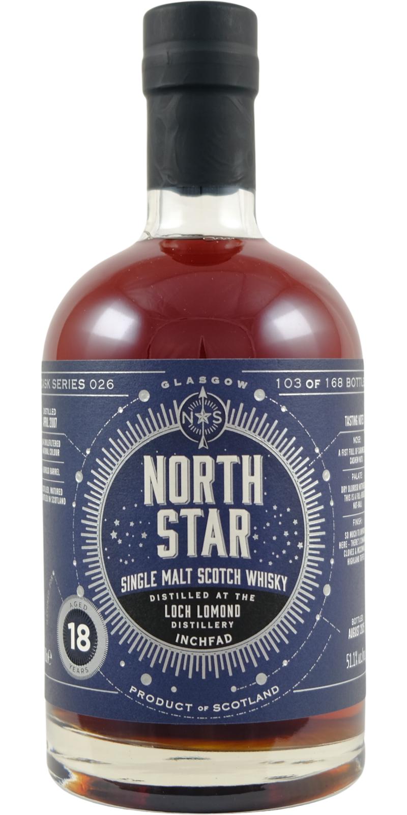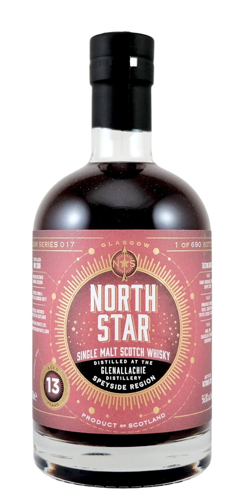 North Star Spirits is an independent bottler founded in Glasgow in 2016 by Iain Croucher. The company specializes in single cask and small batch whiskies, often bottled at cask strength and without chill-filtration or colouring. Its portfolio covers a wide range of Scottish distilleries and occasionally includes world whiskies, with bottlings presented under distinctive, modern label designs. Despite being relatively young, North Star has gained recognition for its bold selections and adventurous approach to cask choice.
