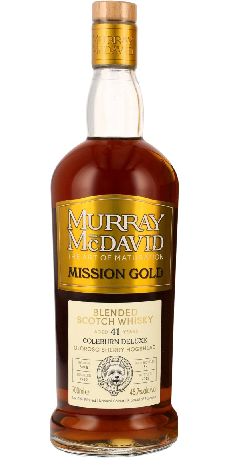 Founded in 1994, Murray McDavid is an independent bottler known for cask finishing practices and wide-ranging sourcing. Originally operated from the Bruichladdich distillery, the brand is now based at the site of the shuttered Coleburn Distillery. Murray McDavid bottles under various labels, such as Mission Gold and Benchmark, often emphasizing creative maturations and wood types. While its bottlings vary in profile, the company maintains a focus on cask influence.